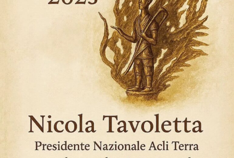 Sarà conferito il prossimo 4 dicembre 2025 a Catania il prestigioso Premio Arciere 2025 al Presidente Nazionale di Acli Terra, Nicola Tavoletta. Il riconoscimento celebra l’impegno straordinario profuso nella promozione e valorizzazione del progetto “Colture & Culture”. “Sotto la direzione del Presidente Nicola Tavoletta – ha dichiarato Roberto Lai, Presidente dell’ANC Tutela Patrimonio Culturale –…