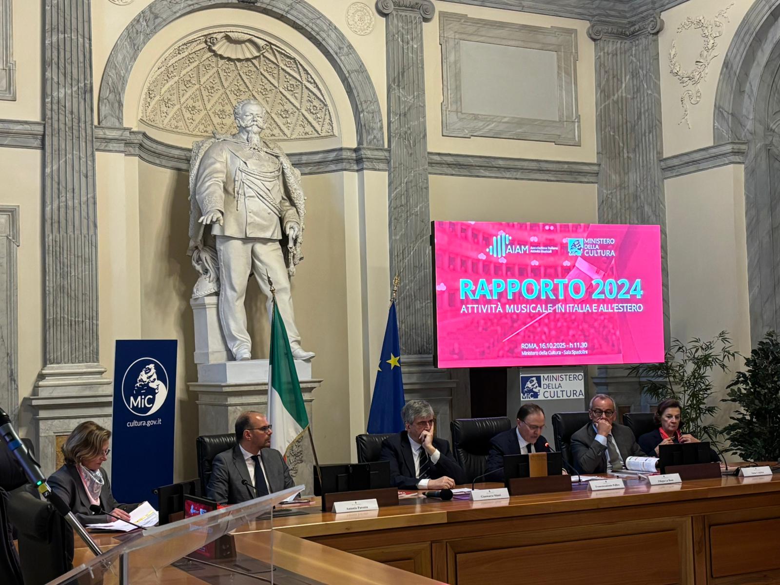Presentato al Ministero della Cultura il Rapporto AIAM 2024 sulle attività musicali, che evidenzia un forte impatto economico: oltre 2 milioni di spettatori, 11.500 concerti e 112 milioni di entrate. Il comparto, che impiega quasi 50.000 lavoratori, è definito “investimento certo” per il Paese. Il Presidente AIAM ha sottolineato che l’attività genera redditi quattro volte superiori al contributo statale e ha chiesto l’aumento del Fondo Nazionale Spettacolo dal Vivo e la costruzione di nuove sale da concerto.